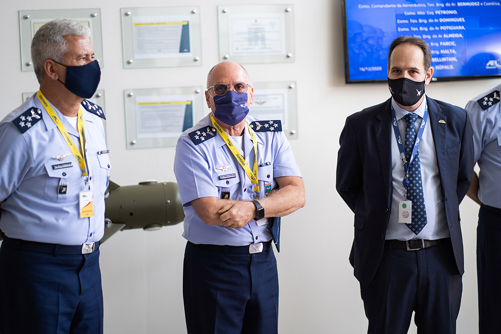 O Comandante da Aeronáutica, TB Bermudez e o Comandante de Operações Aeroespaciais TB Domingues são recepcionados pelo Presidente da AEL Sistemas, Gal Lazar.