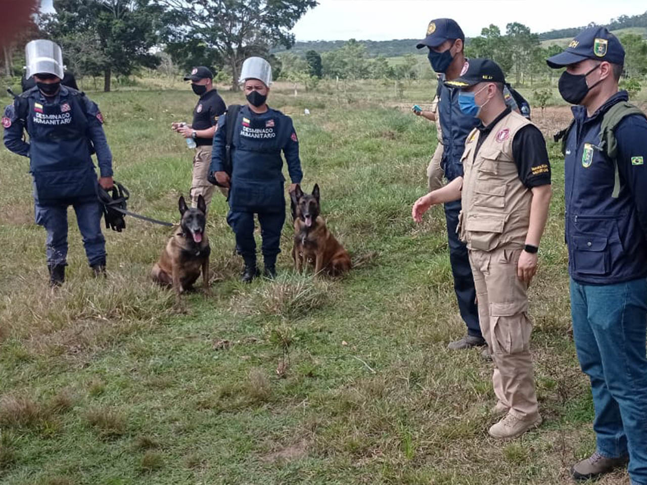 Nos dias 8 e 9 de fevereiro, militares brasileiros integrantes do Grupo de Assessores Técnicos Interamericanos na Colômbia (GATI-CO) receberam treinamento em Técnicas de Desminagem Humanitária no município de Granada, na Colômbia. As atividades foram realizadas com militares colombianos do Batalhão de Engenheiros de Desminagem Humanitária Nº 4 (BIDEH-4) e concentraram-se nas modalidades Desminado Manual, Canino e Mecânico. Integram o GATI-CO atualmente o Major de Engenharia Cláudio Santos Bispo e o Capitão-Tenente Fuzileiro Naval da Marinha do Brasil Gustavo Lopes da Silva Freitas.