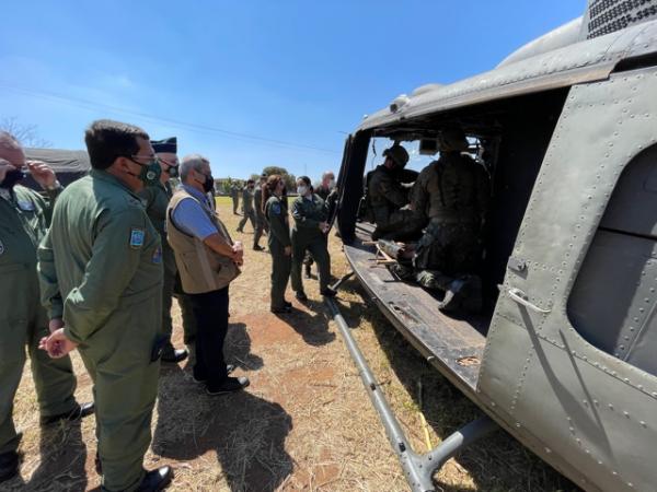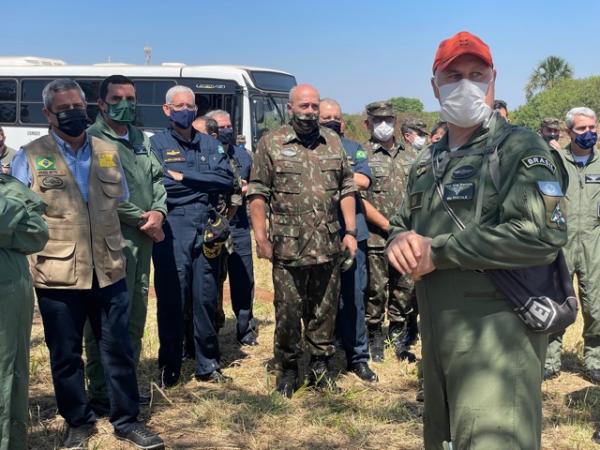 Ao completar 600 horas de voo, o Exercício Conjunto Tápio 2021, realizado pela Força Aérea Brasileira (FAB), em Campo Grande (MS), recebeu, nessa segunda-feira (30/08), a visita de comitiva composta pelo Ministro da Defesa, Walter Souza Braga Netto; acompanhado do Comandante da Aeronáutica, Tenente-Brigadeiro do Ar Carlos de Almeida Baptista Junior; do Comandante de Preparo, Tenente-Brigadeiro do Ar Sérgio Roberto de Almeida; e de Oficiais-Generais da Marinha do Brasil, do Exército Brasileiro e da Força Aérea Brasileira.