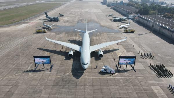 A primeira aeronave KC-30, o FAB 2901, que agora é incorporada ao Esquadrão Corsário, realizou o primeiro táxi na BAGL recebendo as boas-vindas do Corpo de Bombeiros da Base Aérea do Galeão.