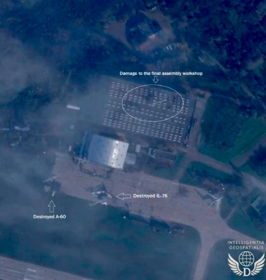 As imagens de satélite divulgadas posteriormente confirmaram a destruição de dois protótipos raríssimos: o Beriev A-60 — plataforma de testes de armas laser — e o A-100LL, aeronave laboratorial essencial para o desenvolvimento do futuro sistema de alerta aéreo antecipado (AEW) A-100 “Premier”.