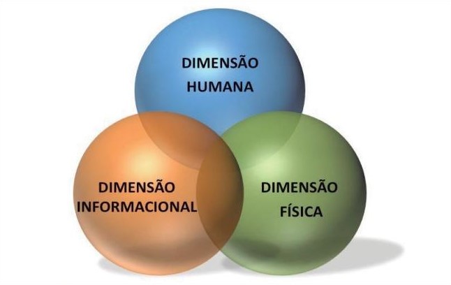 A dimensão física está ligada ao terreno e às condições meteorológicas; a dimensão humana compreende os elementos relacionados às estruturas sociais, aos comportamentos e interesses normalmente geradores do conflito; e a dimensão informacional abrange os sistemas utilizados para obter, produzir, difundir e atuar sobre a informação.