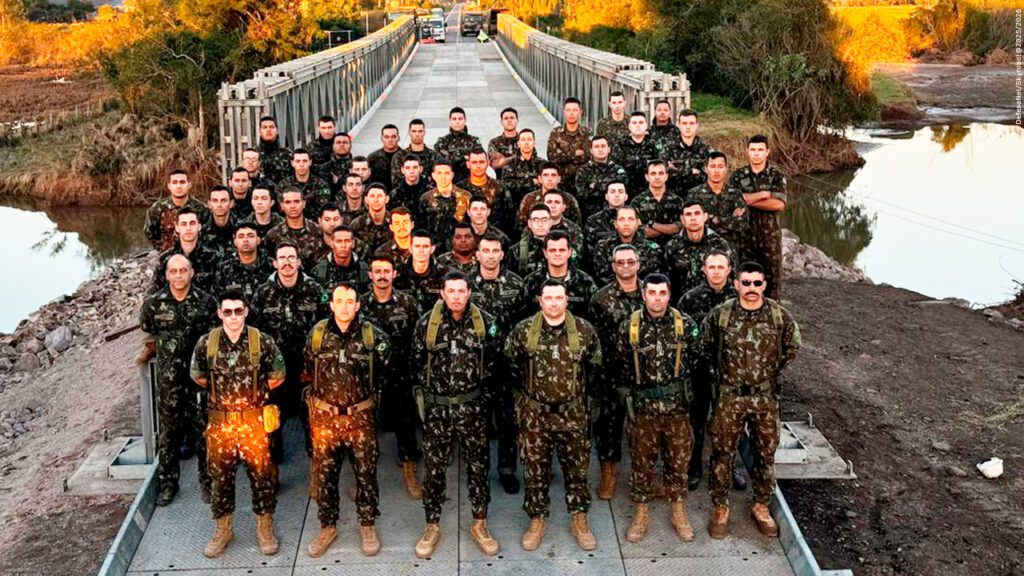 Durante a montagem, enfrentaram condições de frio extremo com temperaturas próximas a 0º centígrados e chuva, porém perseveraram, realizando a montagem da ponte em 10 dias de trabalho, no dia 30 de maio de 2024, contribuindo de maneira destacada para restabelecer a ligação entre a Capital e o Coração do Rio Grande, como é conhecida Santa Maria.