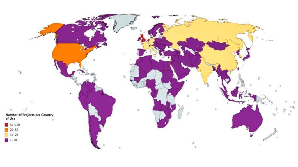 Figura 1 – Número de projetos de robôs e sistemas autônomos por país