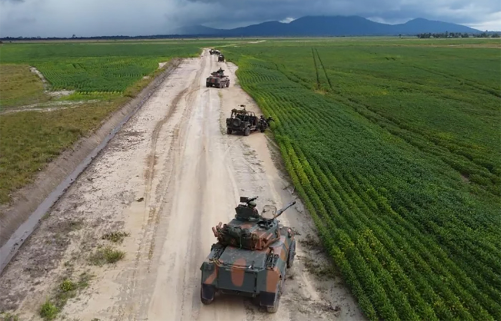 Mobilização de tropas brasileiras no terreno de Roraima. Observar a composição arenosa do terreno chamado Lavrado ou Lavradio. Ao contrário do pensamento geral de boa parte das pessoas a área de Roraima permite operação de viaturas blindadas